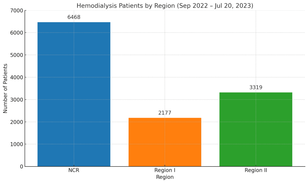 The Philippine Renal Disease Registry (PRDR) provides insights into the regional distribution of CKD patients undergoing hemodialysis between September 2022 and July 20, 2023: