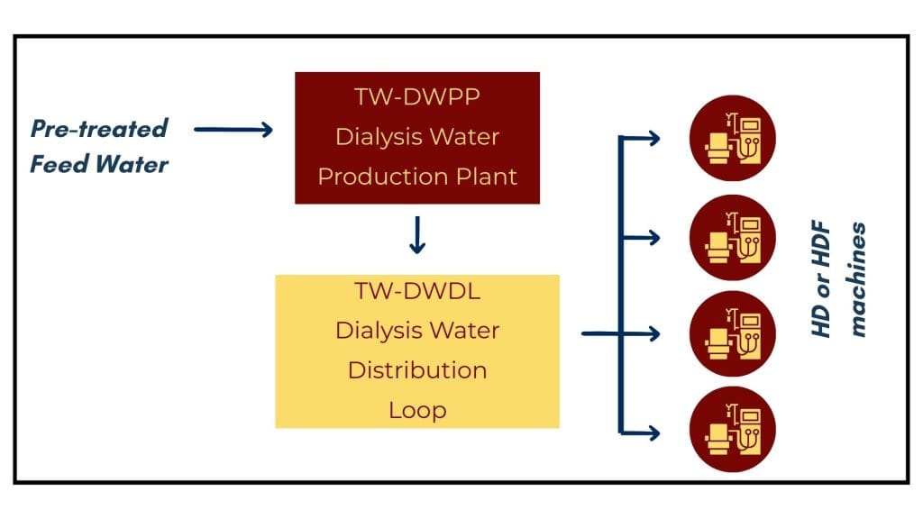 TW provides a comprehensive solution for safe, efficient, and compliant water treatment in hemodialysis applications, ensuring ultrapure water quality in accordance with ISO 23500 and AAMI standard (RD62).